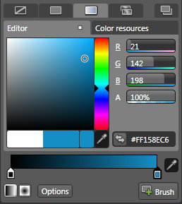 stops appear below your color Editor. In the color Editor, select a blue-ish