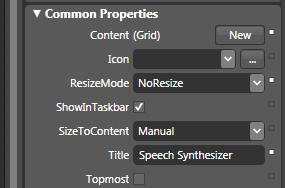 - Staying with the Common Properties panel, find the ResizeMode combobox and