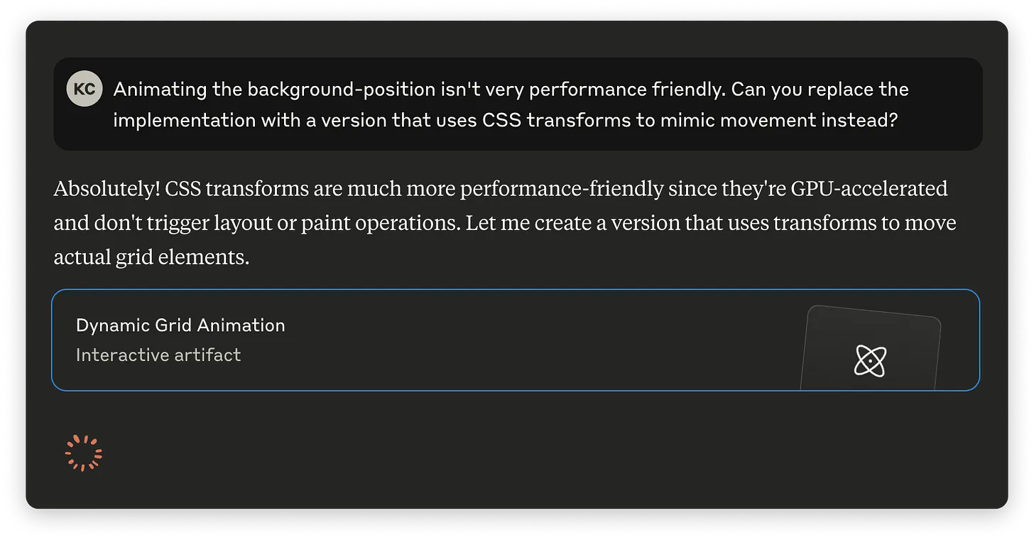 This workflow has been a huge time saver, especially for the types of things I vibe code, which are usually dynamic animations: