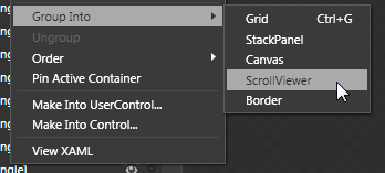 that appears, go to Group Into | ScrollViewer: