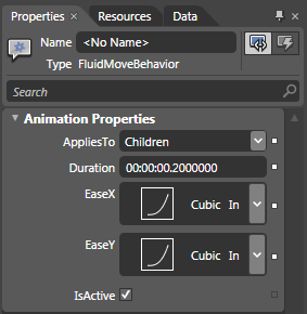 easing that gets applied to the transition. For both EaseX and EaseY, select Cubic In.