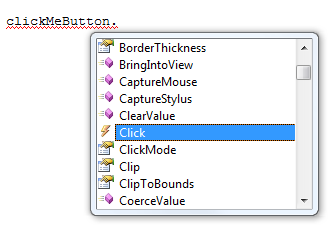 [ the event list for a Silverlight Button in