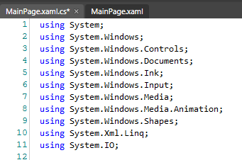 operations you'll eventually need. Make sure MainPage.xaml.cs is open,