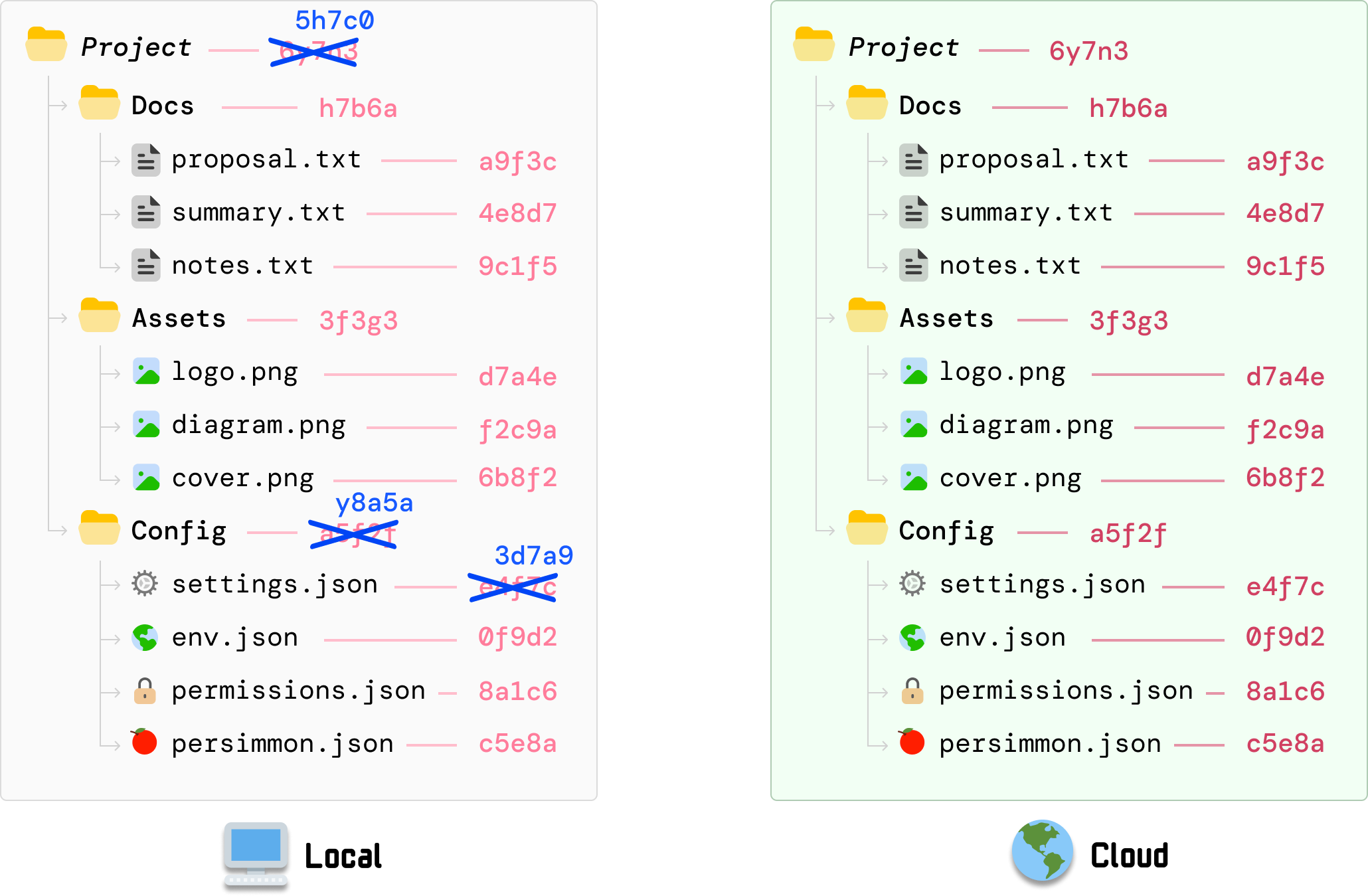 When a file’s content changes locally, we compute the new hash value for that file:
