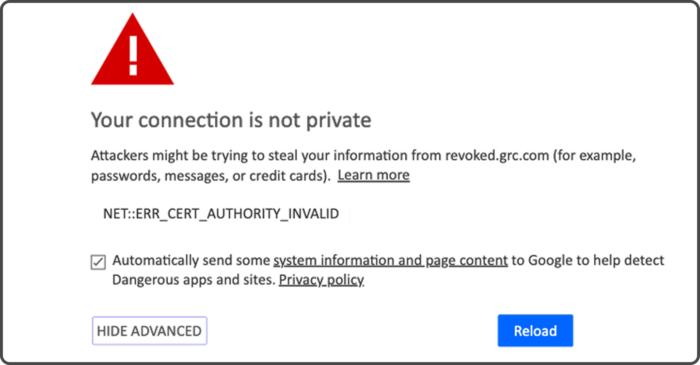 Historically, browsers mostly trusted that CAs did the right thing. The problem? Sometimes they didn’t. A CA could accidentally (or maliciously) issue a valid certificate for a domain to the wrong party. That creates a problem where attackers can impersonate real websites and users would never know, but our browsers typically sniff out these problems. You may have seen warnings like this in the past: