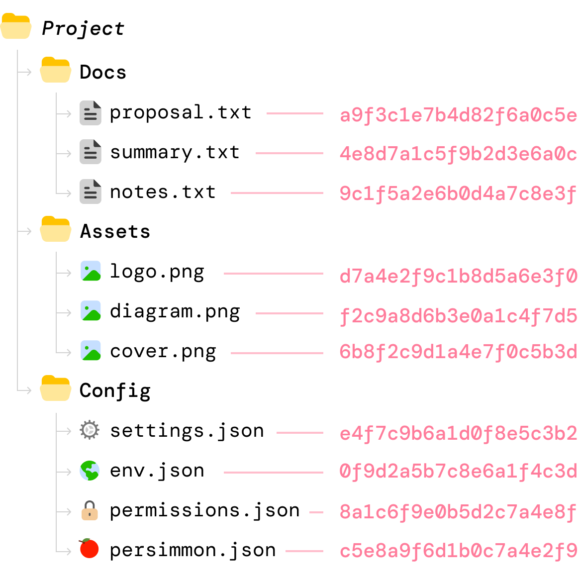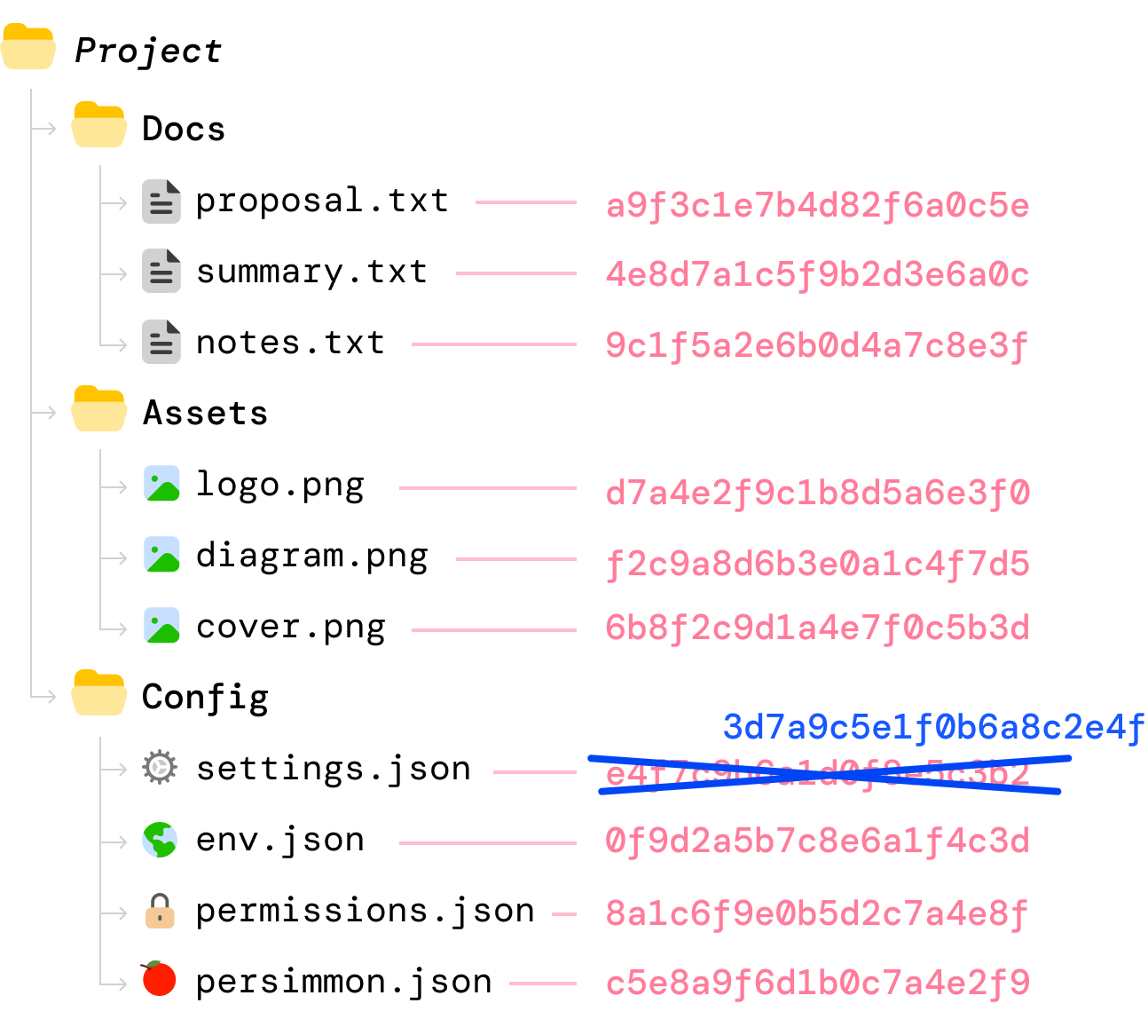 If we had to visualize this, we can now see our folder hashes as follows: