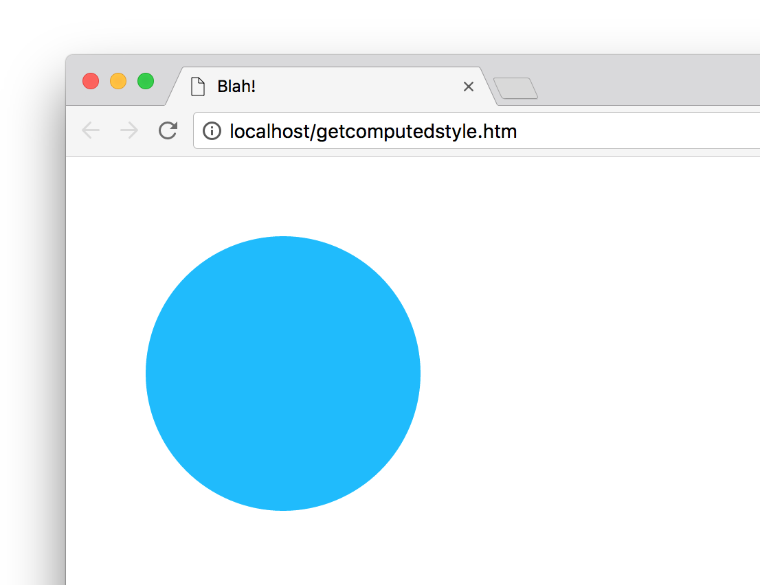 From here, you have the ability to use getPropertyValue and pass in any CSS property value that you'd like the get the computed value of. For example, this is us trying to figure out what our circle's border radius would be: